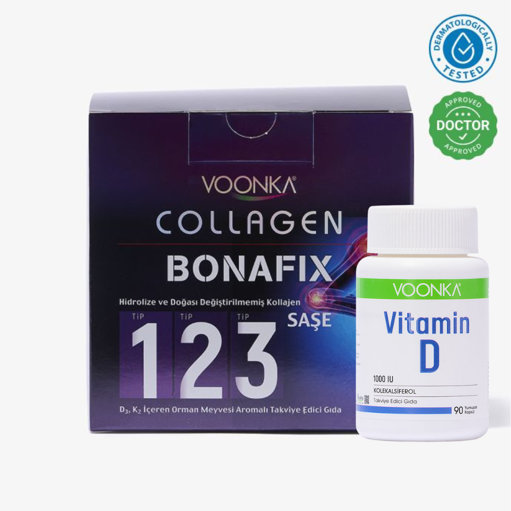 Изпробвай 7 сашета Voonka Collagen Bonafix в комбинация с Voonka витамин D за седмица