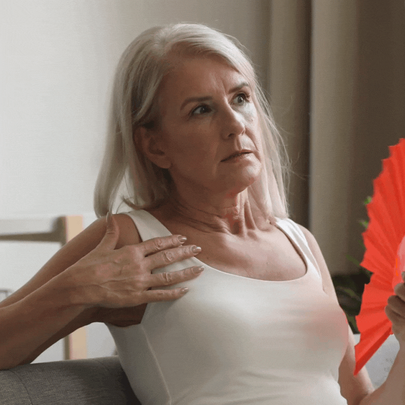 - Топли вълни (hot flashes) и нощни изпотявания: Внезапно усещане за топлина, придружено от учестено сърцебиене, потене или дори студени тръпки.