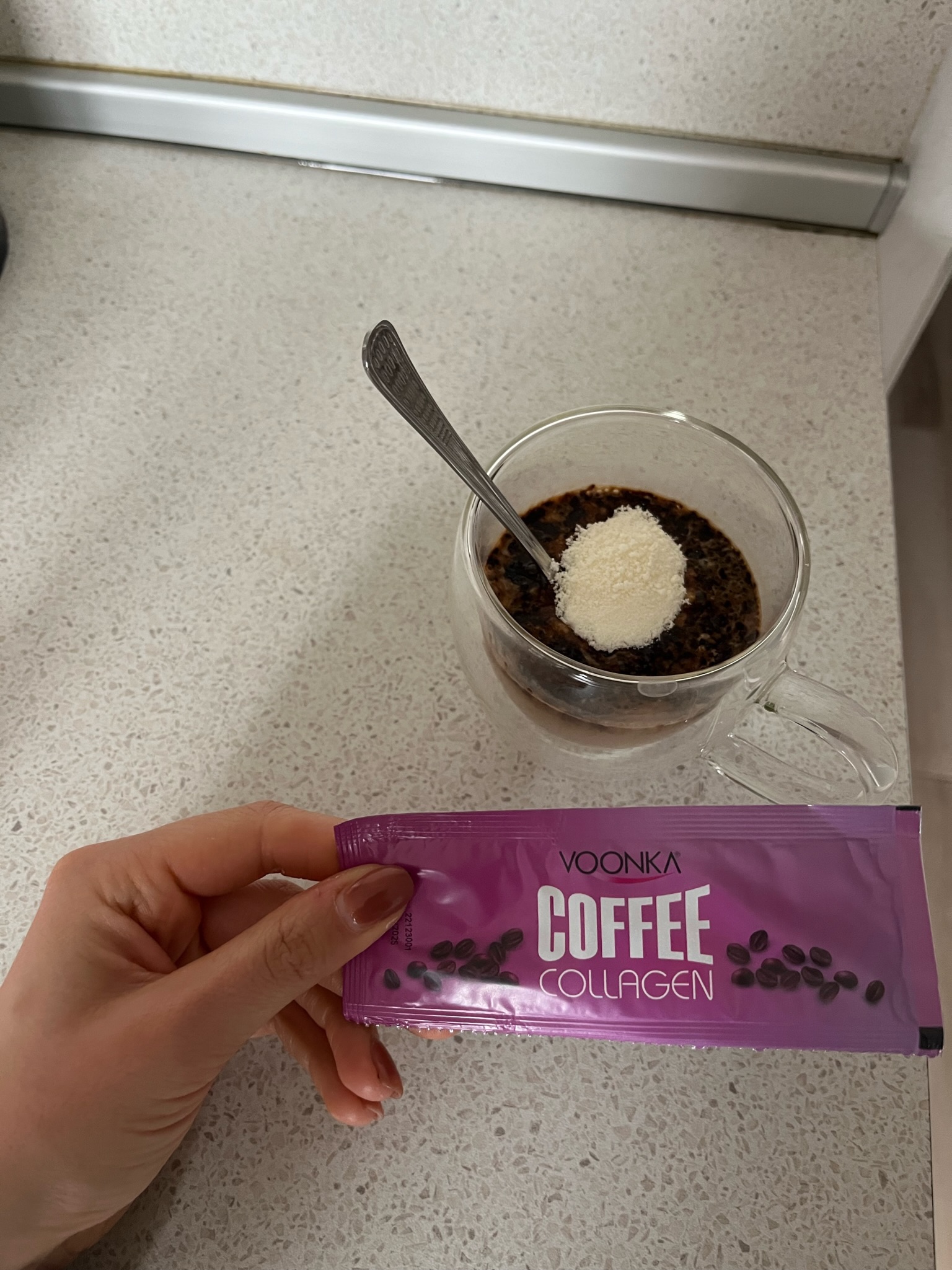 - В сутрешното кафе/чай: от Voonka сме се погрижили с перфектния продукт за любители на кафе – Voonka Coffee Collagen на сашета.